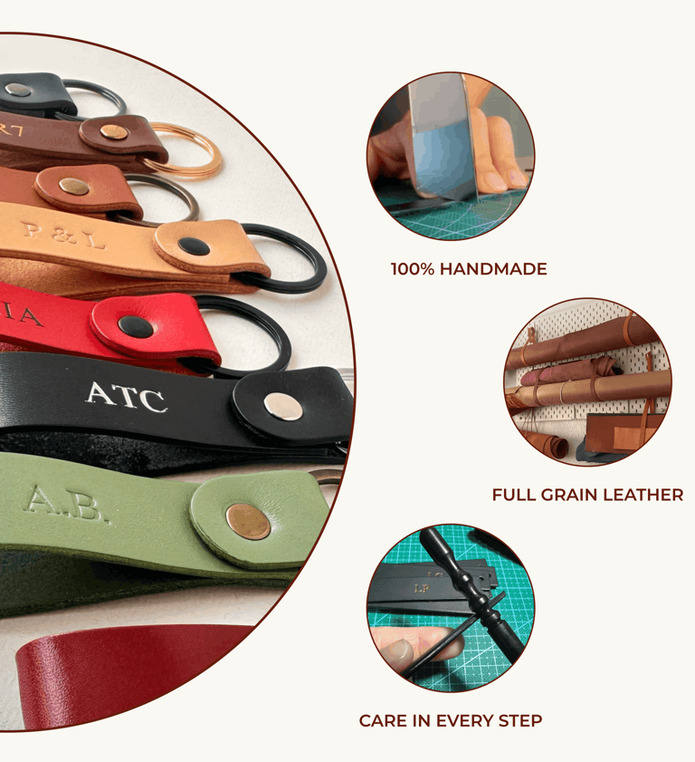 Lo trabajamos a mano: cortamos, grabamos, cosemos, suavizamos y terminamos cada pieza con detalle, cuidando cada paso para que cada creación sea mucho más que un objeto. Es un recuerdo. Un gesto. Un símbolo.